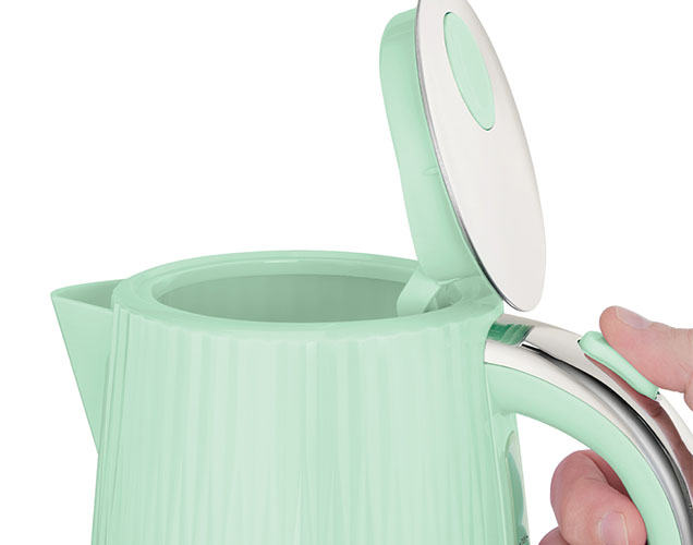 Fierbătorul Russell Hobbs Eden verde fistic este punctul de atracție al oricărei bucătării. Este verde fistic și exteriorul canelat elegant atrage atenția tuturor – și nici nu vă va dezamăgi în ceea ce privește performanța. Un capac cu buton, fereastra pentru nivelul apei și gura de turnare perfectă asigură că băutura ta caldă este preparată cu ușurință și rapiditate.