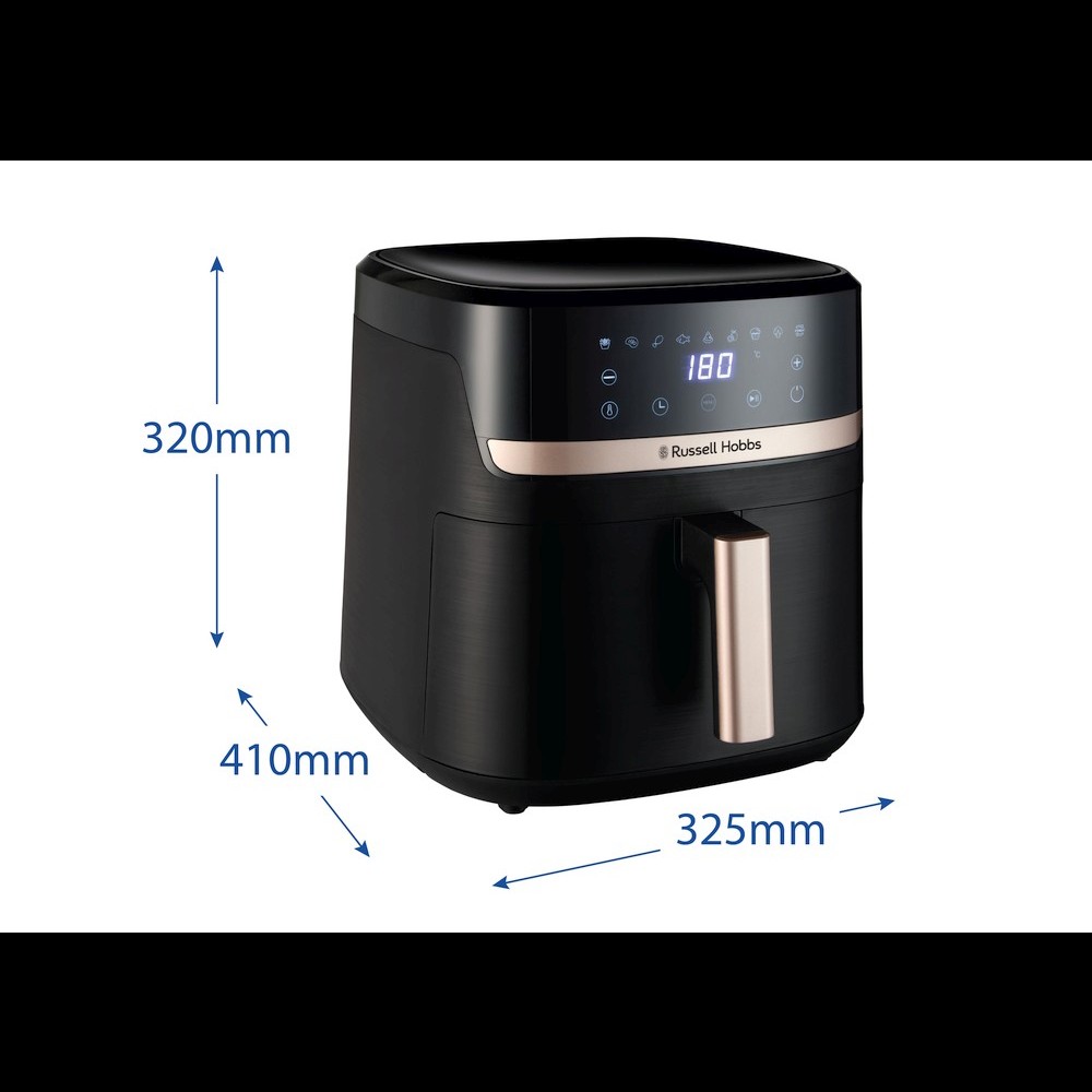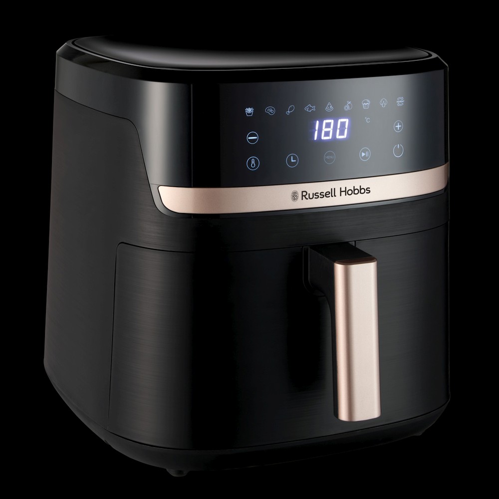Cu accente de șampanie în contrast cu exteriorul negru clasic, această friteuză cu aer cald va arăta elegant pe blatul dvs. de lucru și va completa orice stil de bucătărie.