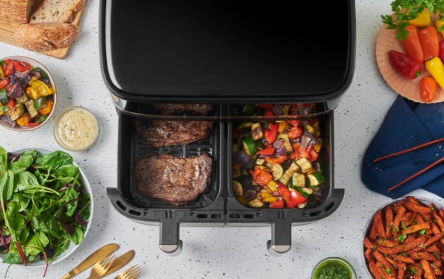 Ecranul tactil digital și comenzile de temperatură fac utilizarea acestei friteuze cu aer cald o joacă de copii. Cu un panou de control simplu și setări intuitive pentru ambele compartimente, programarea mesei preferate este o a doua natură.