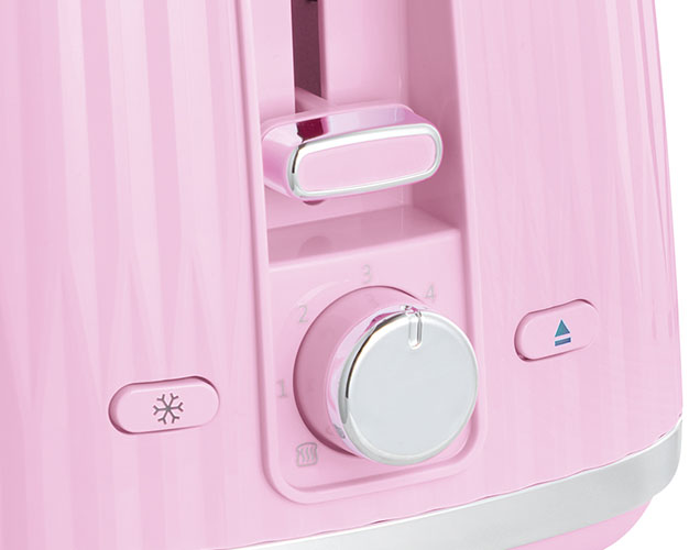 Exteriorul elegant, texturat, face din prăjitorul Russell Hobbs Eden roz o declarație uimitoare de stil în orice bucătărie. Cu o gamă de 6 setări de rumenire și funcțiile de congelare, reîncălzire și anulare, felia perfectă iese de fiecare dată. Și datorită funcției Lift & Look la îndemână, îți poți ridica în siguranță pâinea din fanta caldă pentru o recuperare ușoară.